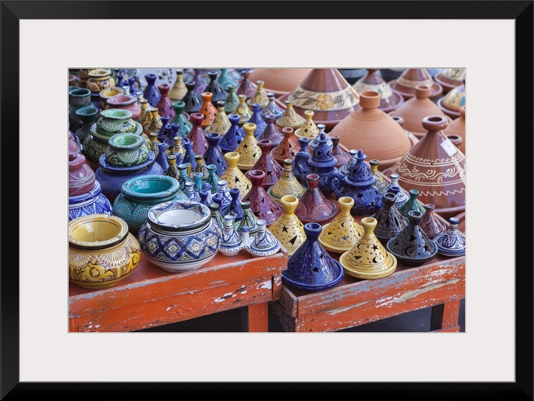 <p>A street seller's wares, including tagines and clay pots near the Kasbah, Marrakesh, Morocco, North Africa, Africa.</p>