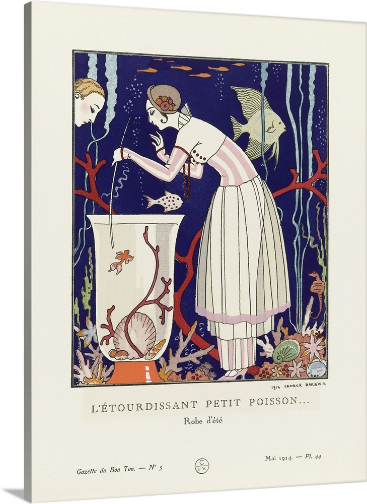 <p>L'etourdissant Petit Poisson. A Stunning Little Fish. Robe d'ete. Summer dress. Art-deco fashion illustration by French artist George Barbier, 1882-1932. The work was created for the Gazette du Bon Ton, a Parisian fashion magazine published between 1912-1915 and 1919-1925.</p>