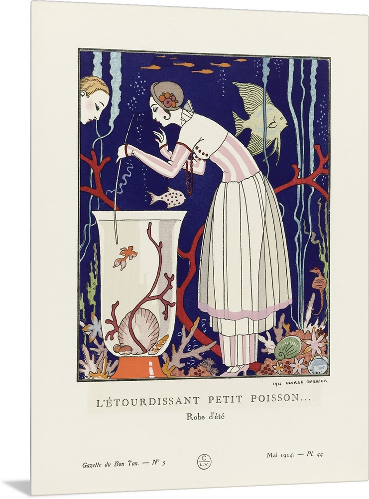 <p>L'etourdissant Petit Poisson. A Stunning Little Fish. Robe d'ete. Summer dress. Art-deco fashion illustration by French artist George Barbier, 1882-1932. The work was created for the Gazette du Bon Ton, a Parisian fashion magazine published between 1912-1915 and 1919-1925.</p>