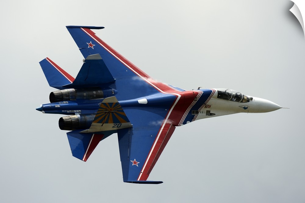 <p>A Sukhoi Su-27 Flanker of the Russian Knights aerobatic team.</p>