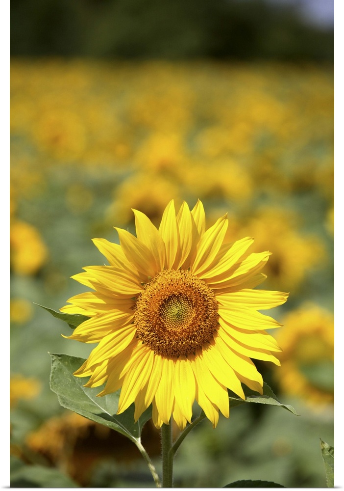 <p>A sunflower in a sunflower field in Loire Valley. France</p>