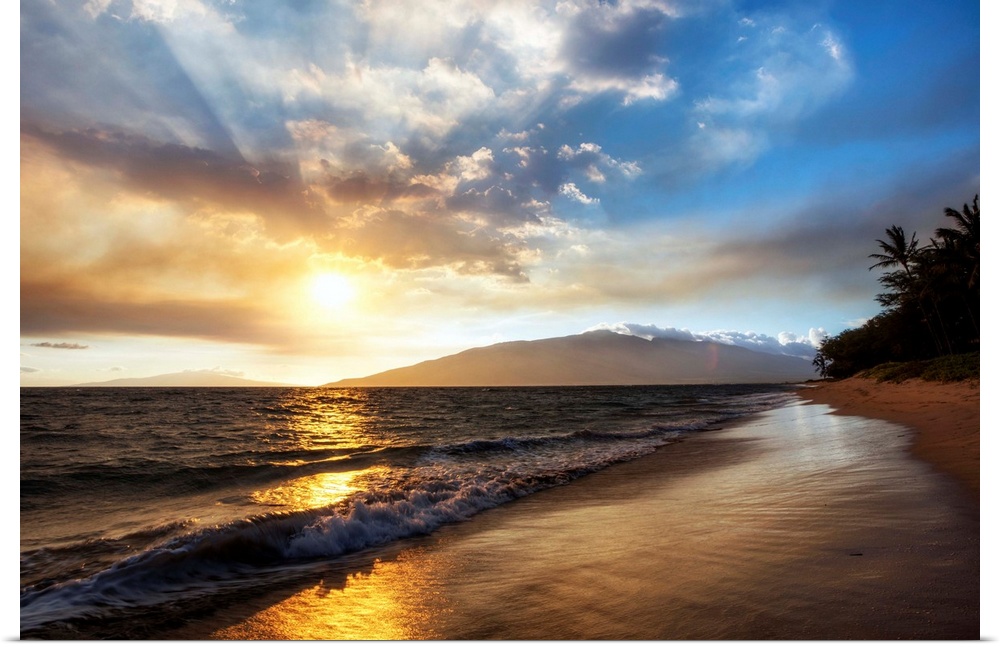 <p>A sunset view with soft water from North Kihei; Maui, Hawaii, United States of America</p>