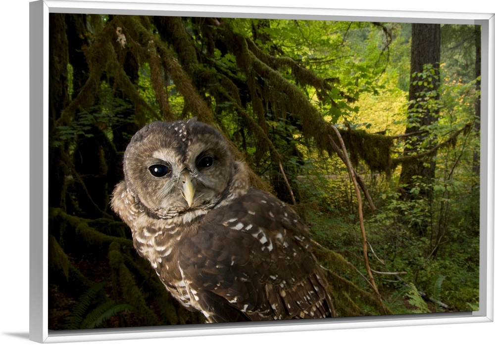 <p>A captive northern spotted owl (Strix occidentalis caurina) in healthy habitat in the Siskiyou National Forest near Merlin.</p>