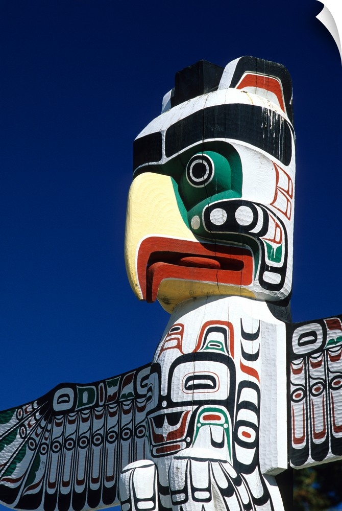 <p>A totem pole In Vancouver, Canada...totem pole, eagle, wood, carving, northwest indians, native, wood, carve, vancouver, canada, british columbia, painted, canadian, tribal</p>