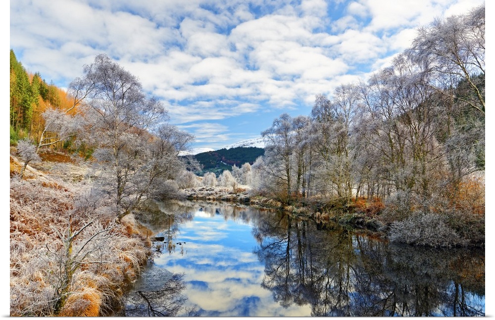 <p>A tranquil view of Loch Doilet and surrounding trees on a calm and frosty winter morning in the Ardnamurchan Peninsula, Scotland</p>