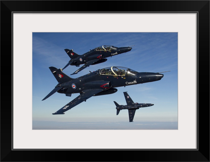 <p>A trio of Royal Canadian Air Force CT-155 Hawk training jets break for the camera.</p>