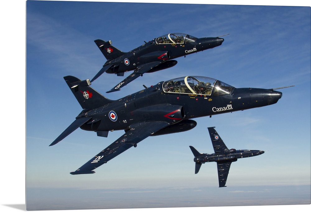 <p>A trio of Royal Canadian Air Force CT-155 Hawk training jets break for the camera.</p>