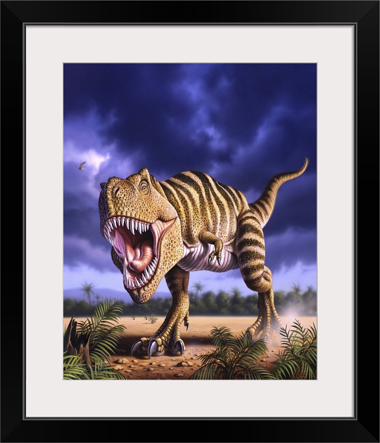 <p>A Tyrannosaurus Rex attacks, lit by the late afternoon sun.</p>