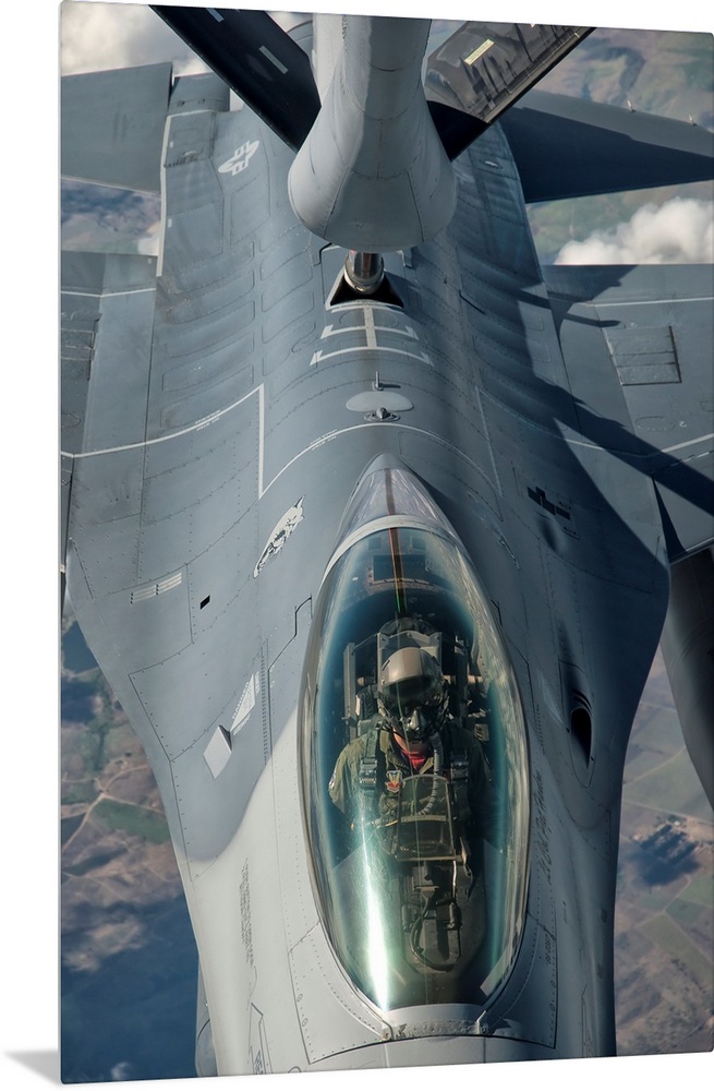 <p>A U.S. Air Force F-16C Fighting Falcon receives in-flight refueling.</p>