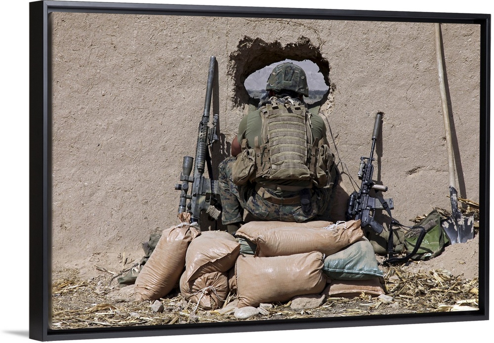 <p>October 14, 2010 - A U.S. Marine sniper observes his sector at a patrol base near Sangin, Afghanistan. The Marines supported the International Security Assistance Force with counterinsurgency operations.</p>