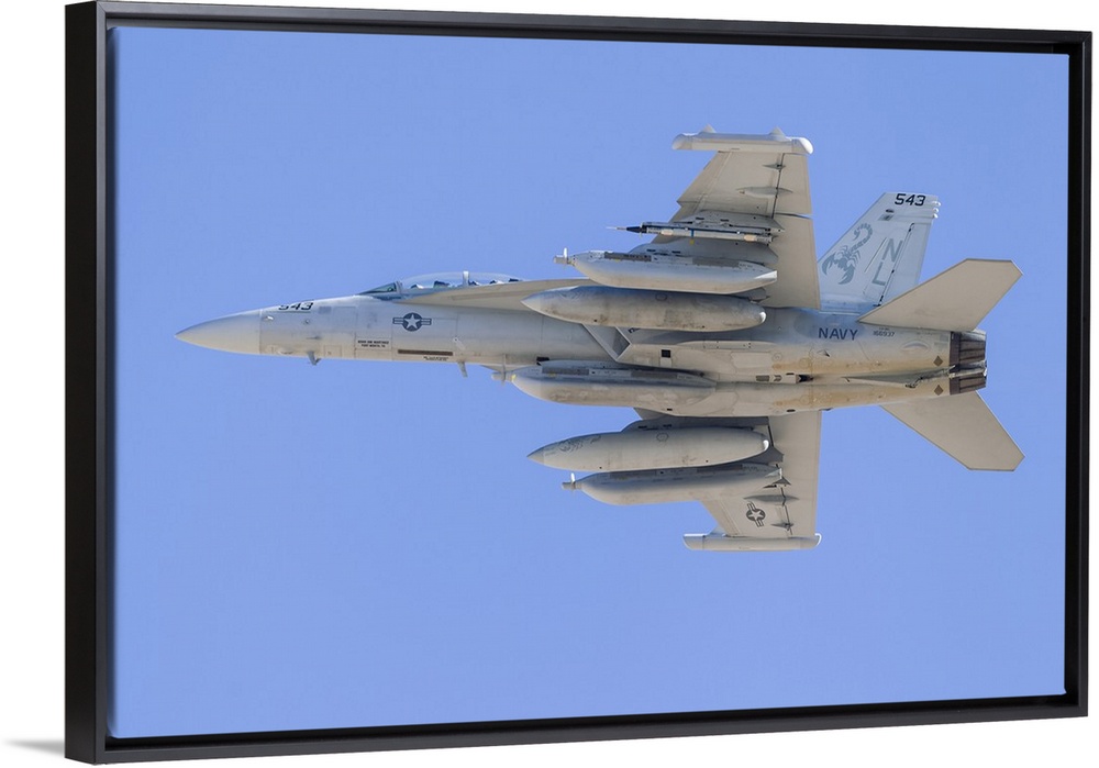 <p>A U.S. Navy E/A-18G Growler climbs out of Nellis Air Force Base, Nevada, on a Red Flag mission.</p>