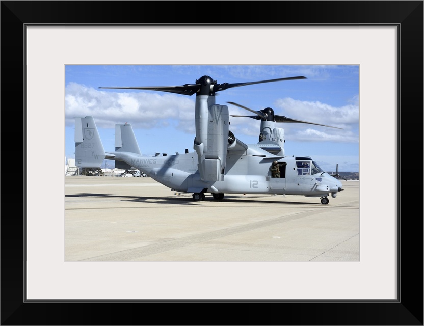 <p>A U.S. Marine Corps MV-22B Osprey taxiing at Marine Corps Air Station Miramar.</p>