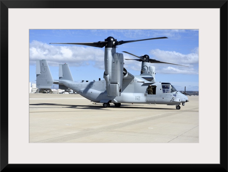 <p>A U.S. Marine Corps MV-22B Osprey taxiing at Marine Corps Air Station Miramar.</p>