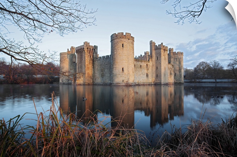 <p>A view of Bodiam Castle with reflection in the water.</p>