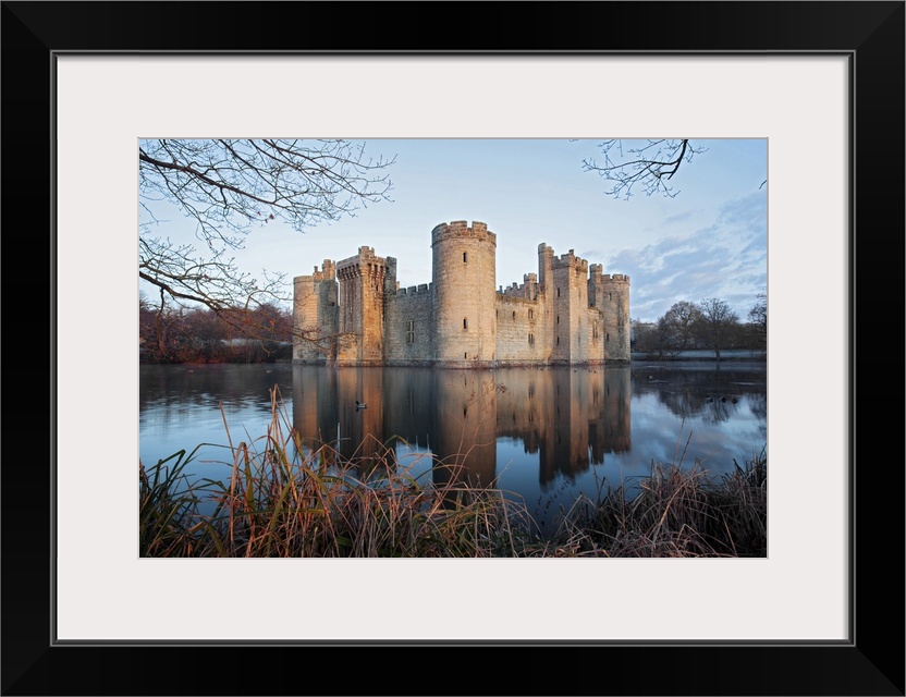 <p>A view of Bodiam Castle with reflection in the water.</p>