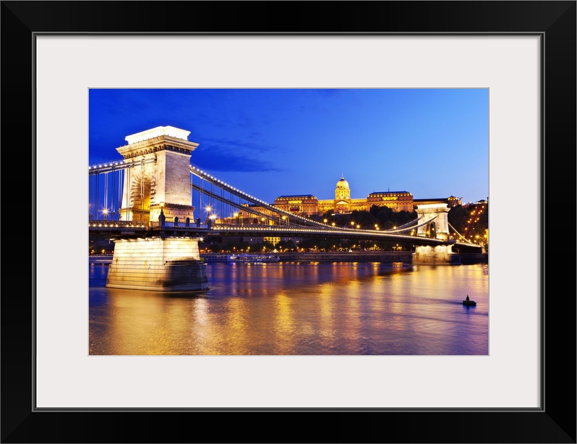 <p>A view of the Chain Bridge over the river Danube at night.</p>