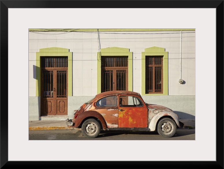 <p>A vintage Volkswagen Beetle in front of a house in Merida, Yucatan, Mexico.</p>