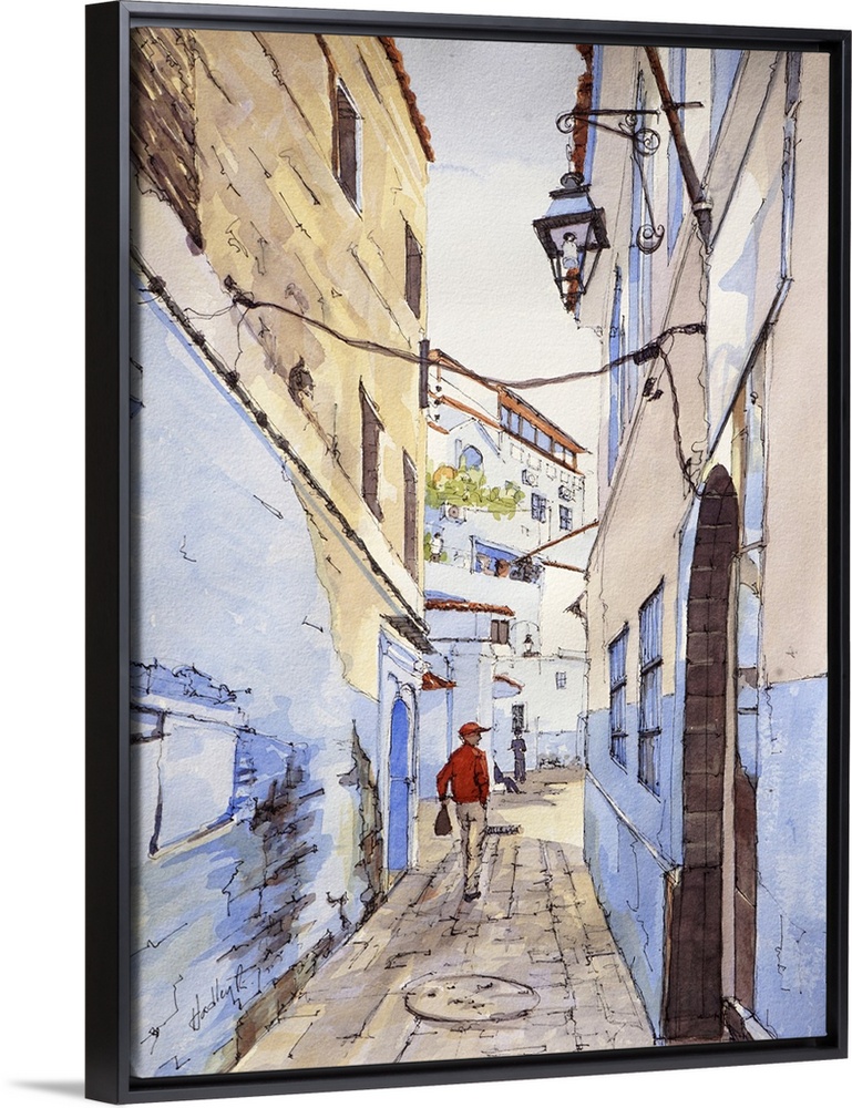 Art Blue Wall Art Cityscapes Contemporary Art Painting Africa Morocco Watercolor