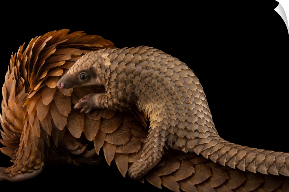 <p>A vulnerable adult female white bellied pangolin, Phataginus tricuspis, with her baby, at Pangolin Conservation.</p>