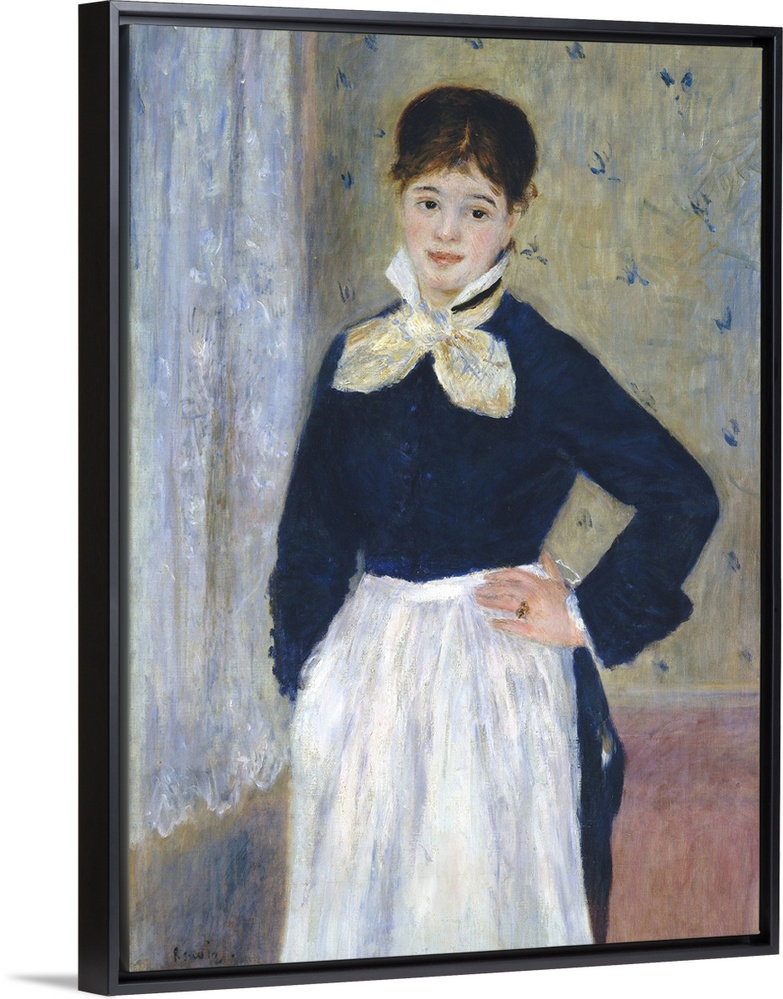 <p>Renoir portrays a waitress who worked at one of several Parisian restaurants established by a butcher named Duval. An 1881 Baedeker guidebook described these Etablissements de Bouillon as offering a limited and affordable menu to patrons waited on by women, soberly garbed, and not unlike sisters of charity. Renoir imparted to his comely model an unaffected grace. As he once said, I like painting best when it looks eternal without boasting about it: an everyday eternity, revealed on the street corner: a servant-girl pausing a moment as she scours a saucepan, and becoming a Juno on Olympus.</p>
