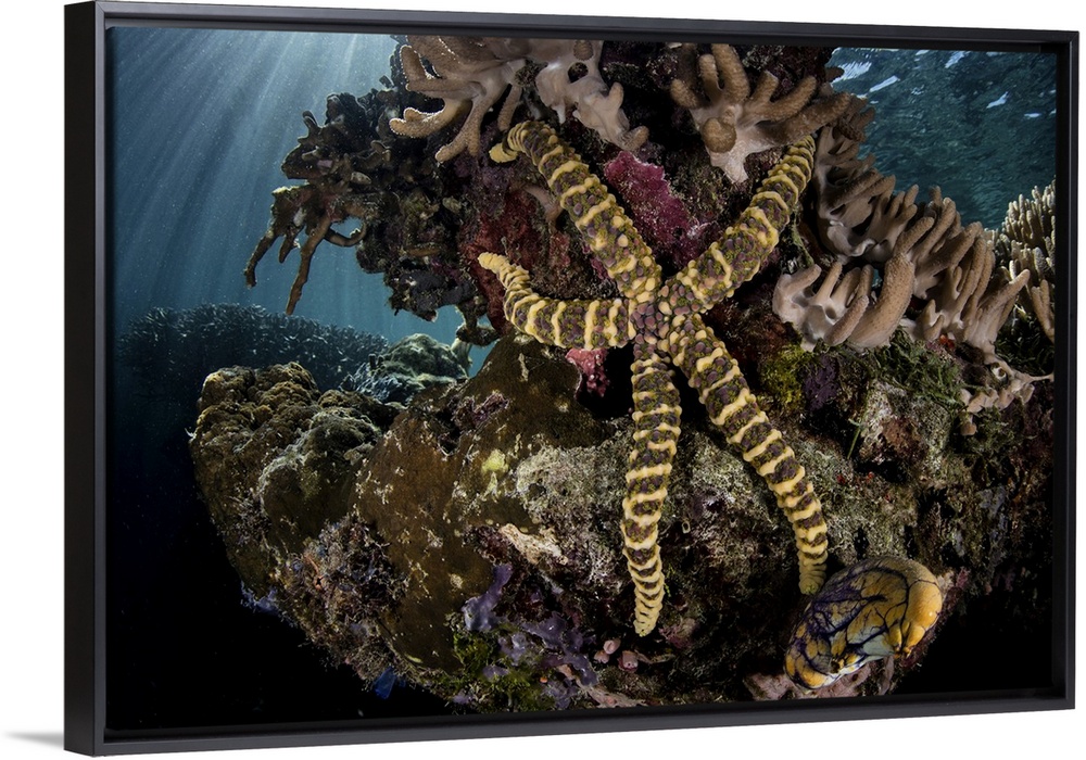 <p>A warty sea star clings to a coral reef in Raja Ampat, Indonesia.</p>