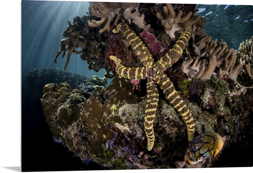 <p>A warty sea star clings to a coral reef in Raja Ampat, Indonesia.</p>