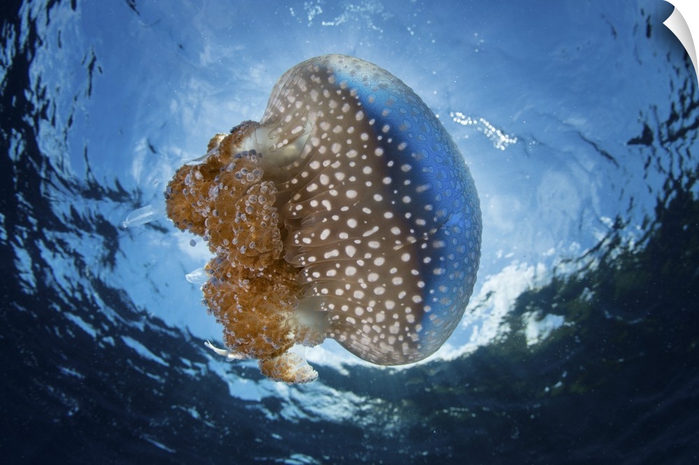 <p>A white-spotted jellyfish drifts in a strong current in the Lesser Sunda Islands.</p>