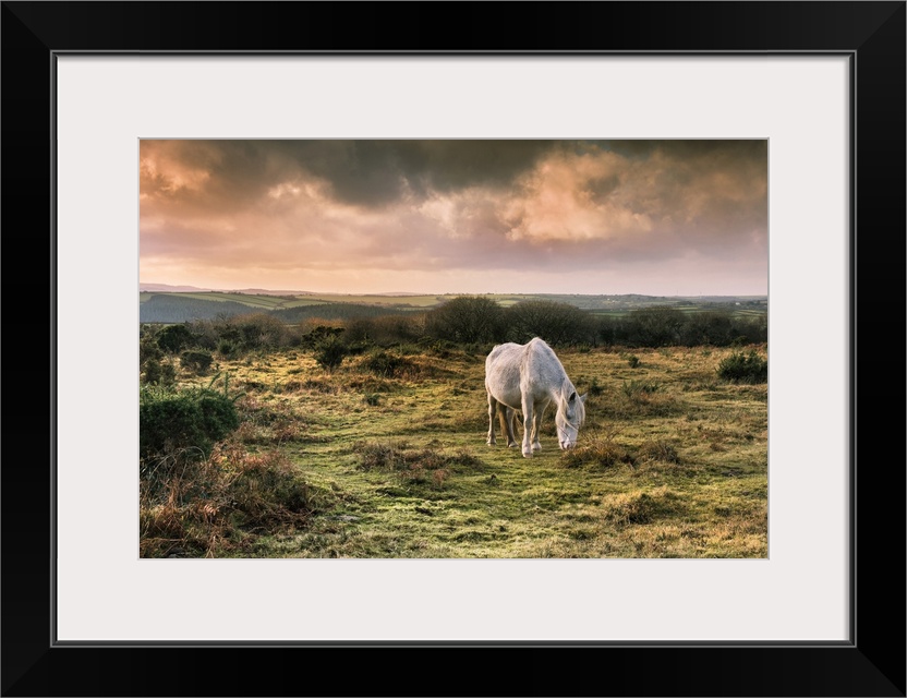 <p>A wild Bodmin Pony grazing on Goonzion Downs on Bodmin Moor in Cornwall.</p>