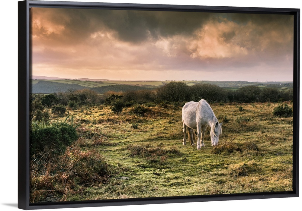 <p>A wild Bodmin Pony grazing on Goonzion Downs on Bodmin Moor in Cornwall.</p>