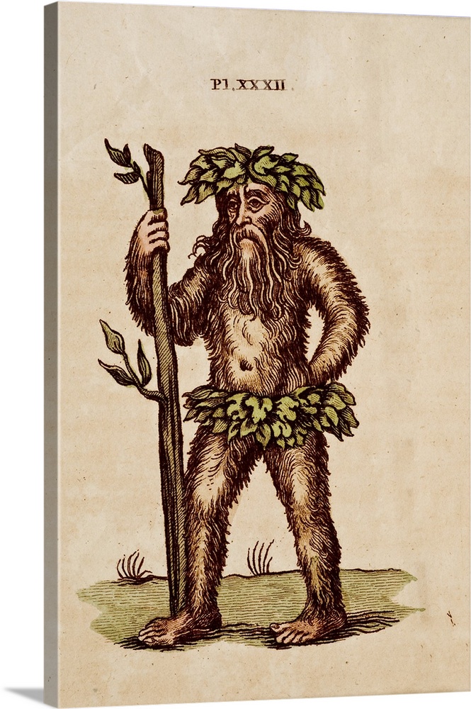 <p>An unattributed woodcut representing the wild man of the woods. The engraving is convergant in imagery with the first (and enduring) European representations of apes with hirsute bodies, holding a broken branch as a staff. This is not a true 'Green Man" because the face is not surrounded by leaves. The features are European.</p>