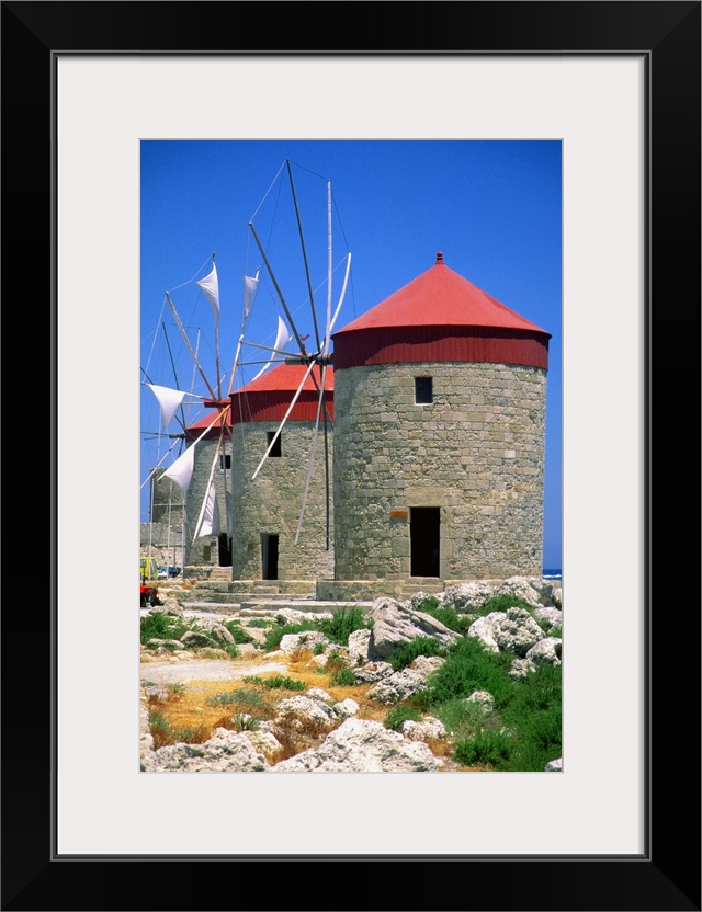 <p>Low angle view of a windmill at Mandraki Harbor, Rhodes, Greece</p>