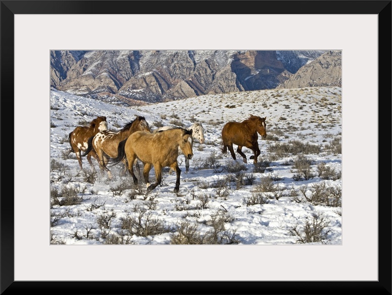<p>A winter scene of running horses on The Hideout Ranch in Shell, Wyoming.</p>