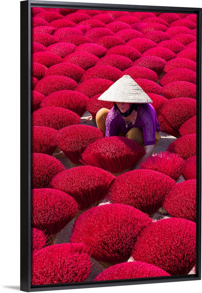 <p>A woman sorting out the incense sticks drying in the sun, Hung Yen province, Vietnam.</p>