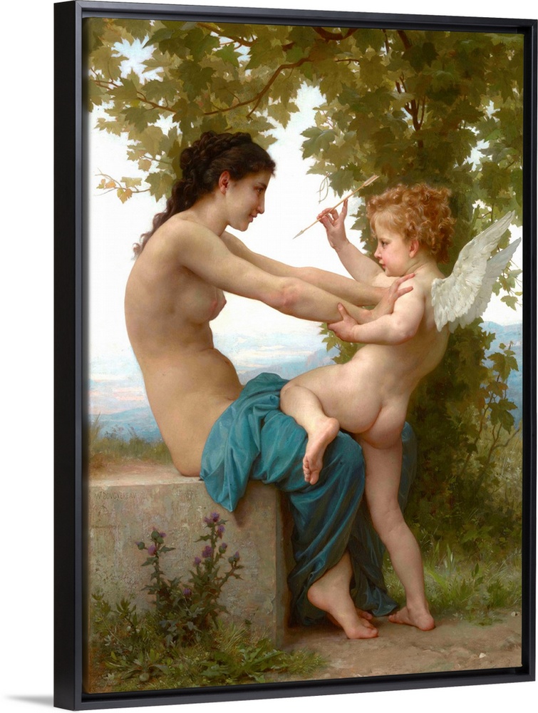 <p>A Young Girl Defending Herself against Eros, by William Adolphe Bouguereau, 1880, French painting, oil on canvas. A young nude woman insincerely pushes away Cupid, the classical god of love. She smiles as she struggles unconvincingly against the mischievo (BSLOC_2016_6_68)</p>