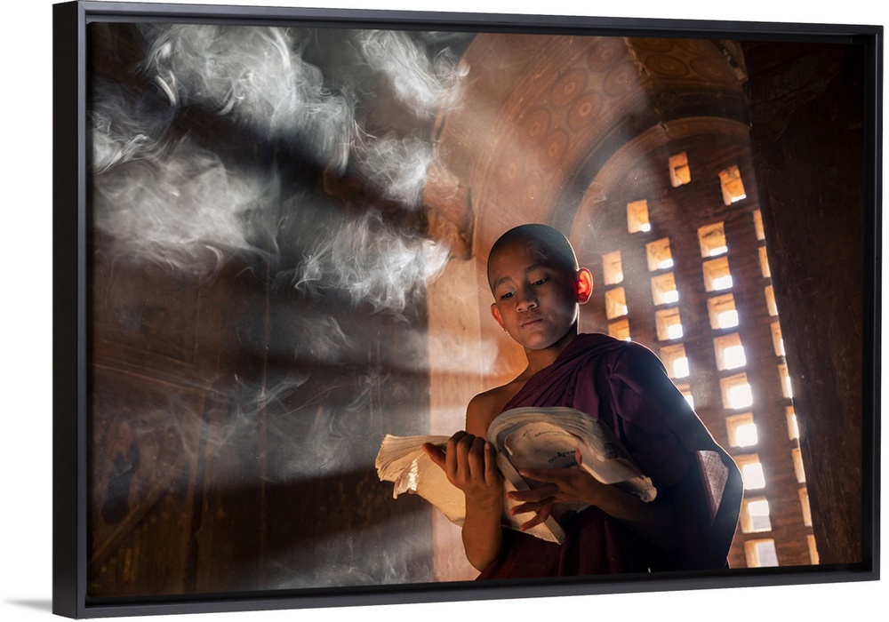 <p>A young monk reading by a window inside a temple, UNESCO, Bagan, Mandalay Region, Myanmar</p>