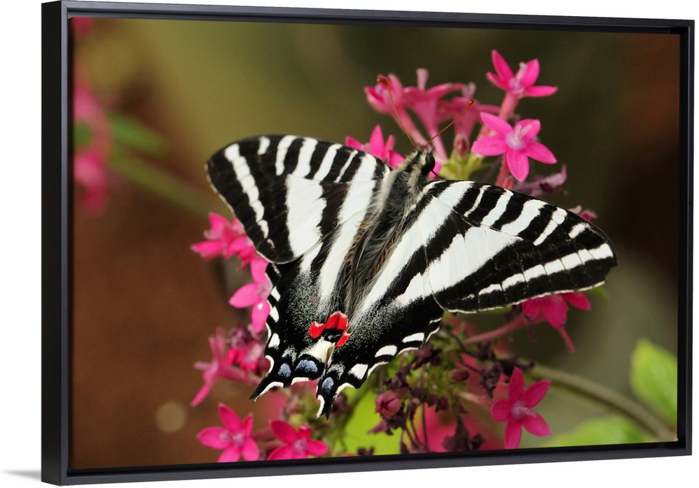 <p>A zebra swallowtail, Protographium marcellus, on pink flowers. Westford, Massachusetts.</p>