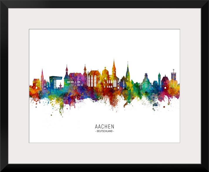 <p>Watercolor art print of the skyline of Aachen, Germany</p>