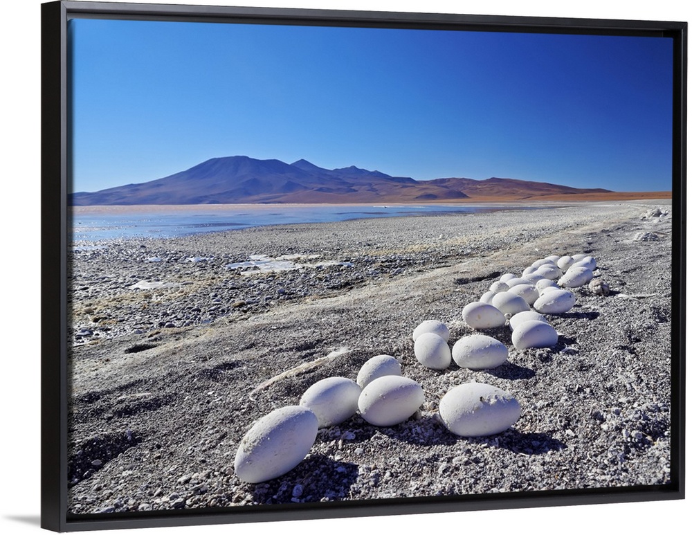 <p>Bolivia, Potosi Department, Sur Lipez Province, Eduardo Avaroa Andean Fauna National Reserve, Abandoned Flamingo Eggs on the shore of the Laguna Colorada.</p>