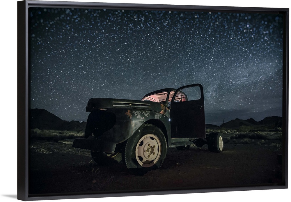<p>Abandoned old truck with the stars and the night sky</p>