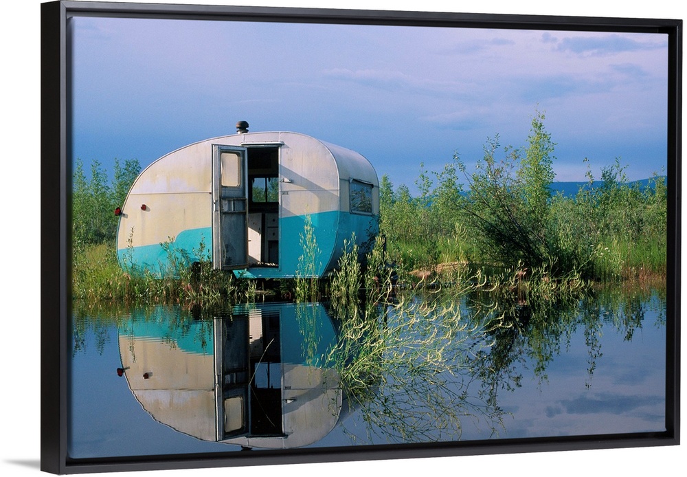 <p>An old trailer sits abandoned along a flooded field near the Alaskan Highway. | Location: Border of Alaska, USA and British Columbia, Canada.</p>