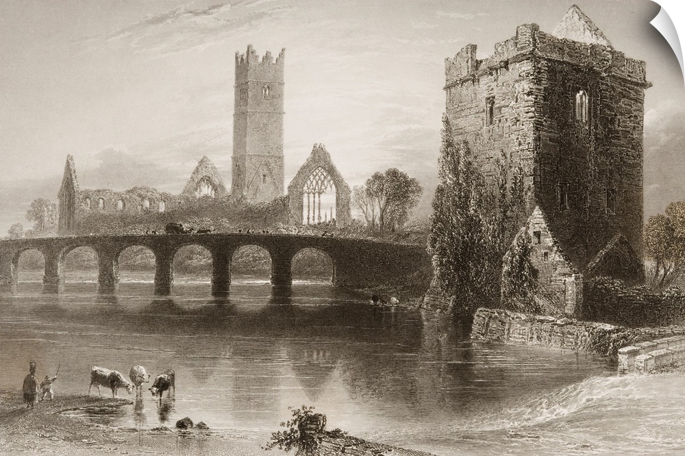 <p>Abbey Of Clare, Galway, Ireland. Drawn By W. H. Bartlett, Engraved By J. Cousen. From "The Scenery And Antiquities Of Ireland" By N. P. Willis And J. Stirling Coyne. Illustrated From Drawings By W. H. Bartlett. Published London c1841.</p>