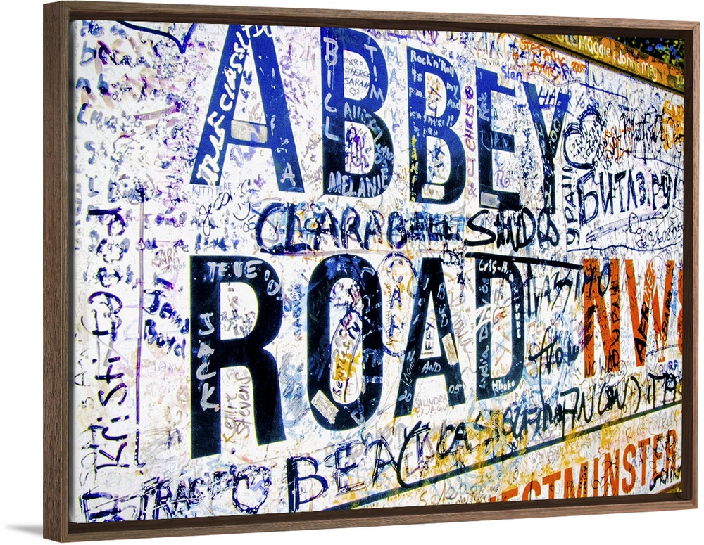 <p>Famous Abbey Road road sign covered with grafitti from Beatle fans</p>