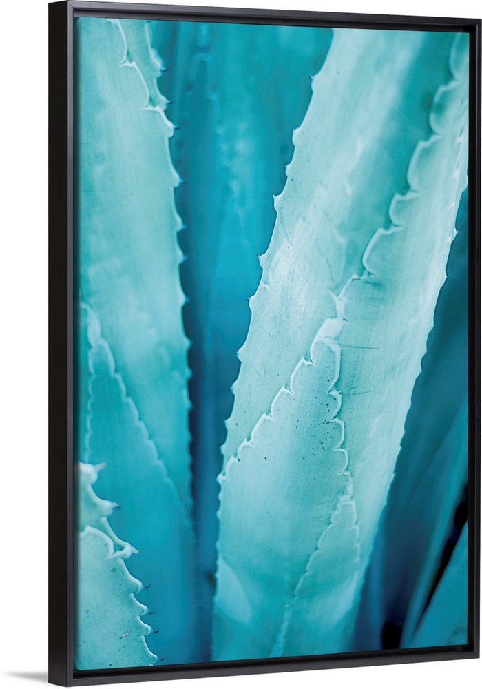 <p>Cool toned photograph of agave plant leaves up close.</p>