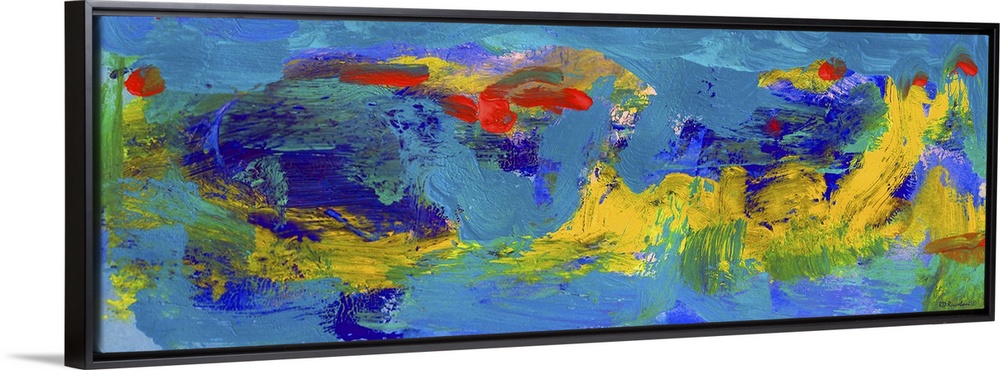 <p>Abstract Blue Carnival Panorama by RD Riccoboni, colors in blue reds orange yellows.</p>