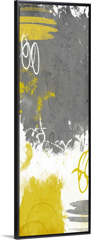 <p>Vertical contemporary abstract art in shades of white, grey, and yellow.</p>