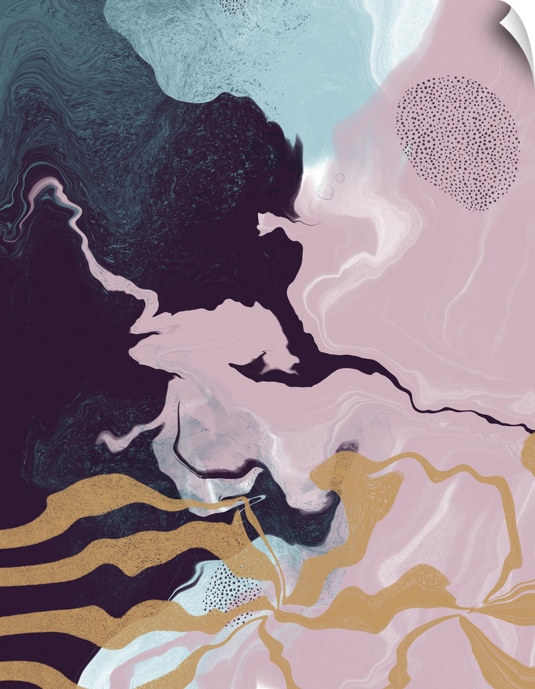 <p>Abstract liquid artwork in gold, teal, pink and purple.</p>