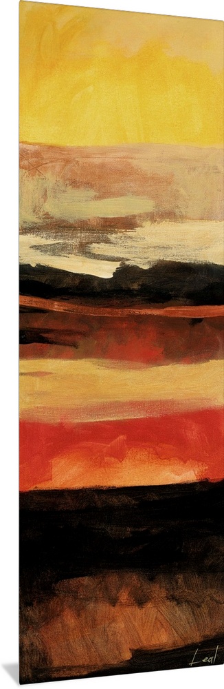 <p>Abstract painting using warm tones in shades of yellow, brown, red, and orange.</p>