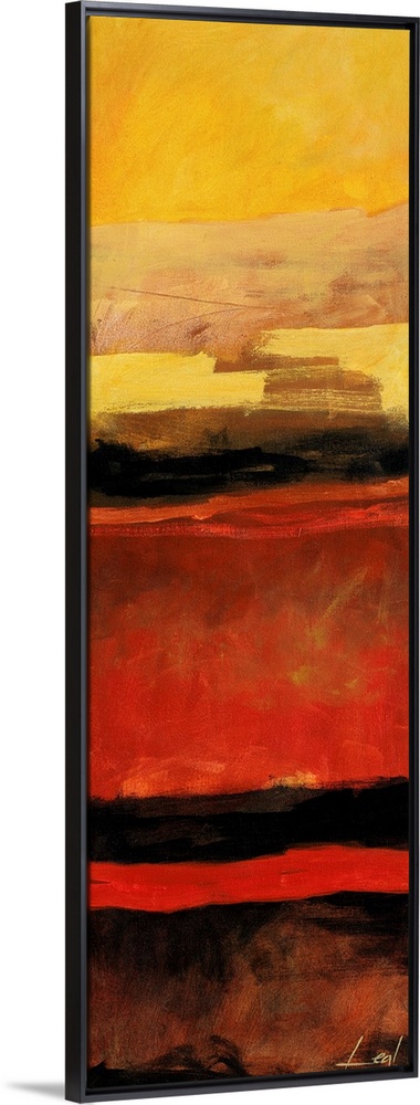 <p>Abstract painting using warm tones in shades of yellow, brown, red, and orange.</p>