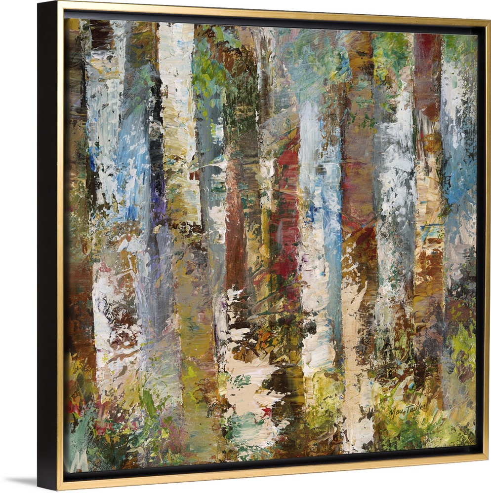 <p>Contemporary abstract painting of a mash-up of colors and textures resembling a dense forest.</p>