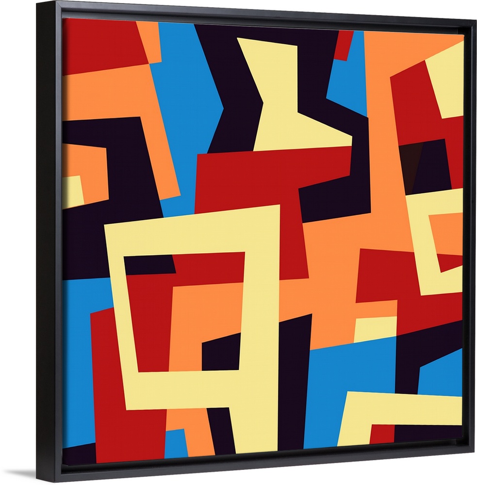 <p>Modern geometric abstract design in red, blue and yellow.</p>